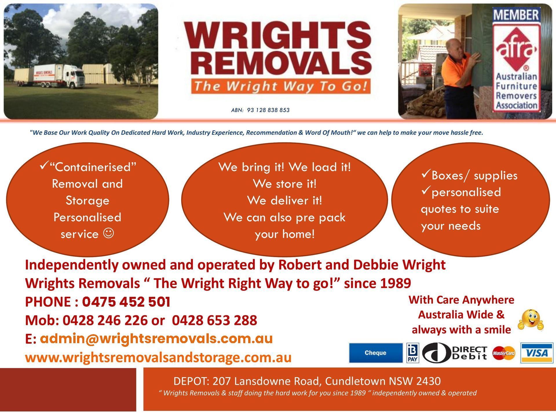 Let us assist you with all of the hard work that comes along with this great opportunity. Our establishment is located in Cundletown NSW, but we’ll help you with your move anywhere throughout Australia.
